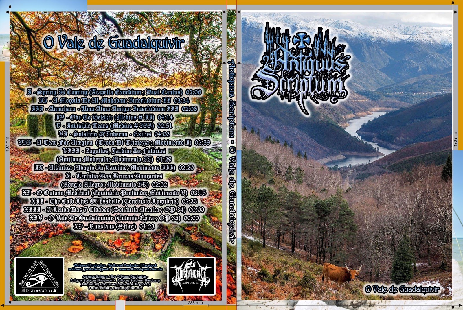 Saudações dos Domínios Antigos! Passo para anunciar que a prestigiada editora italiana, This Winter Will Last Forever, vai lançar brevemente uma Antologia em CD, que ressuscitará alguns dos hinos esquecidos da já longa discografia de 18 Invernos de Antiquus Scriptum, incluindo a nova versão do clássico 'Russians', de 1985, do Sting, que estamos a gravar de momento... O lançamento será CD profissional, intitulado precisamente de "Antologia" e terá esta capa. A tracklist será a seguinte, abraços \m/ Magus